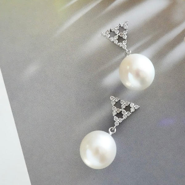 3粒のダイヤからなる三角形のピアス。